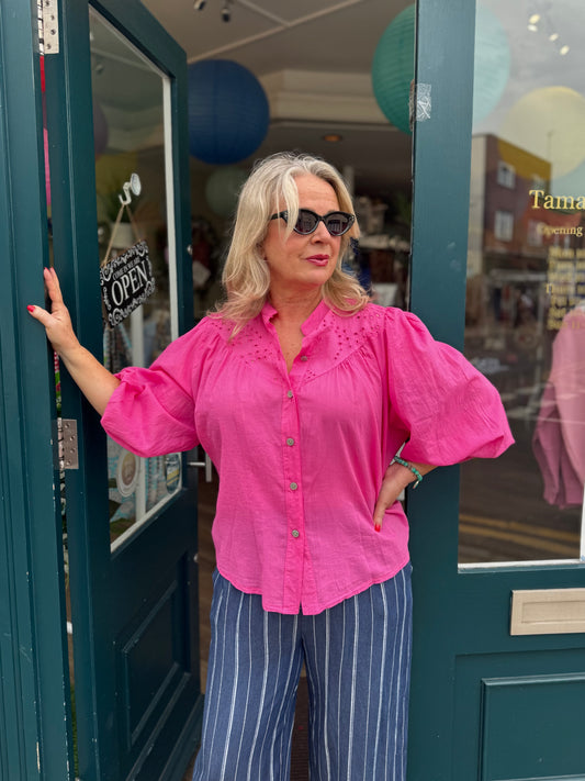 Rosie Cotton Blouse With Broiderie Anglaise Trim
