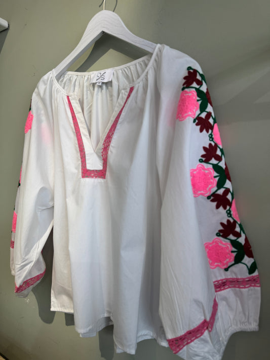 Nellie Folksy Floral Embroidered Cotton Blouse - White Or Navy