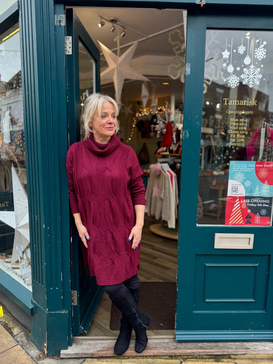 Jennifer Roll Neck Cable Jumper Dress - Black Or Burgundy