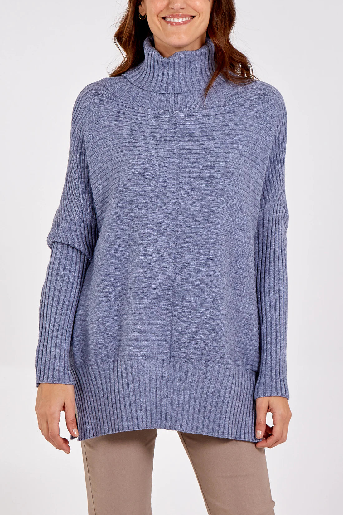 Adele Slouchy Ribbed Roll Neck Jumper - Multiple Colours