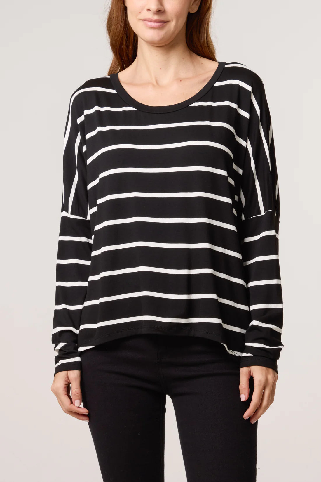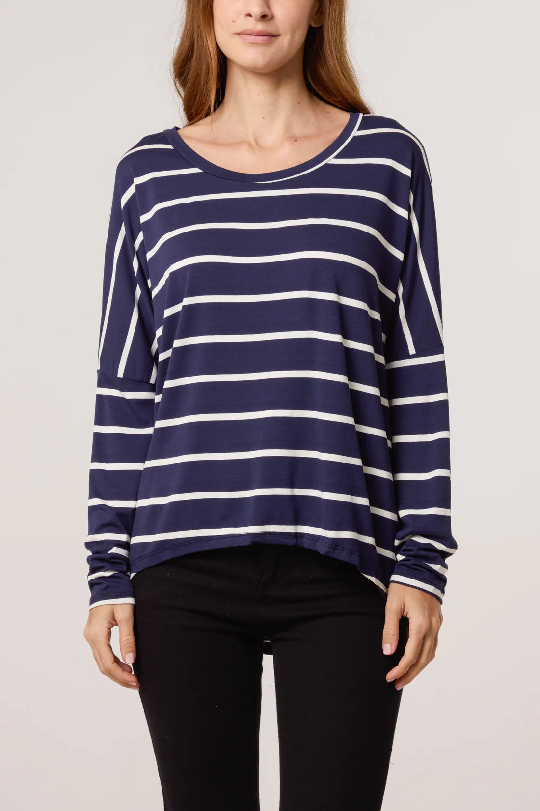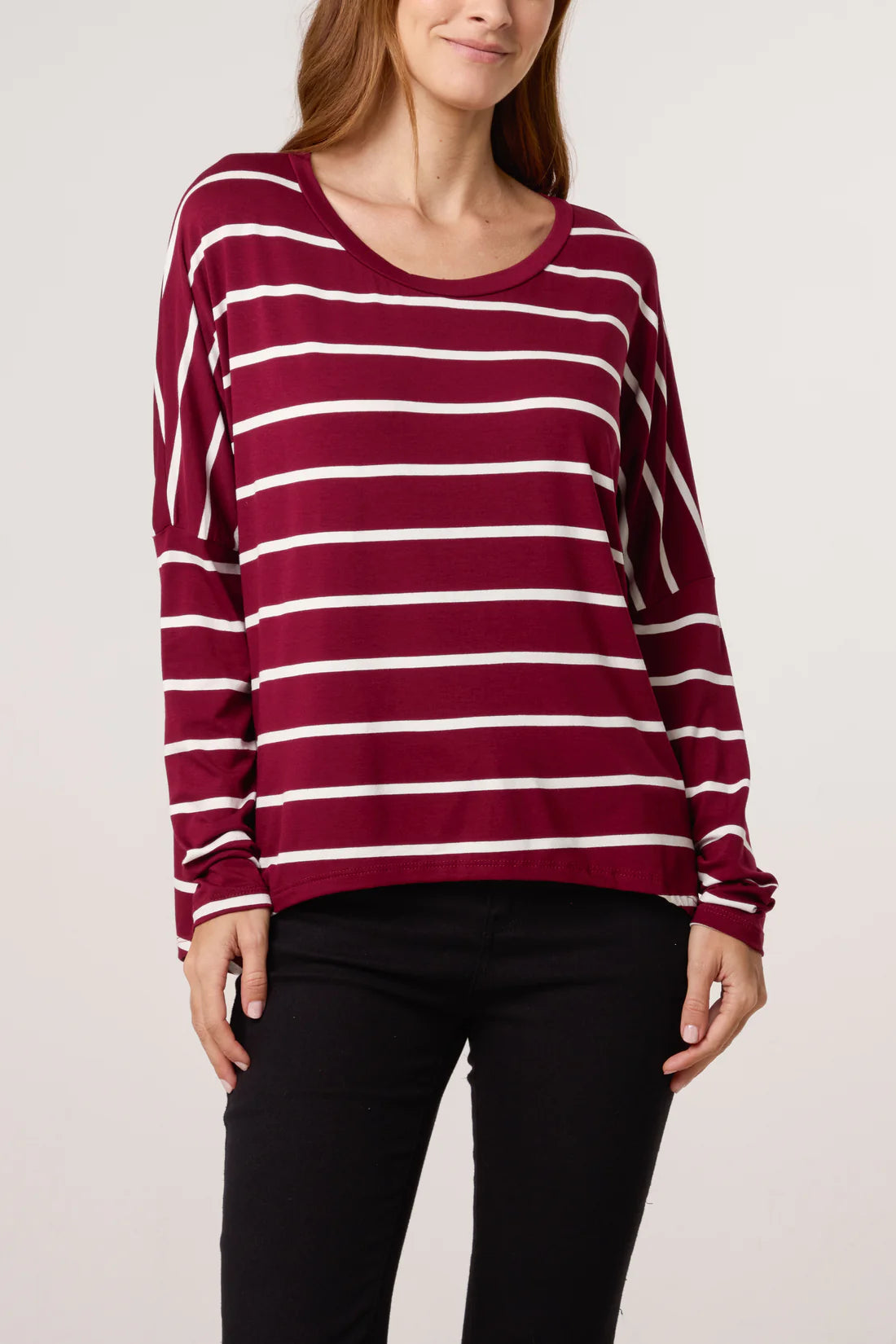 Amanda Long Sleeve Stripe Top - Navy, Black Or Burgundy