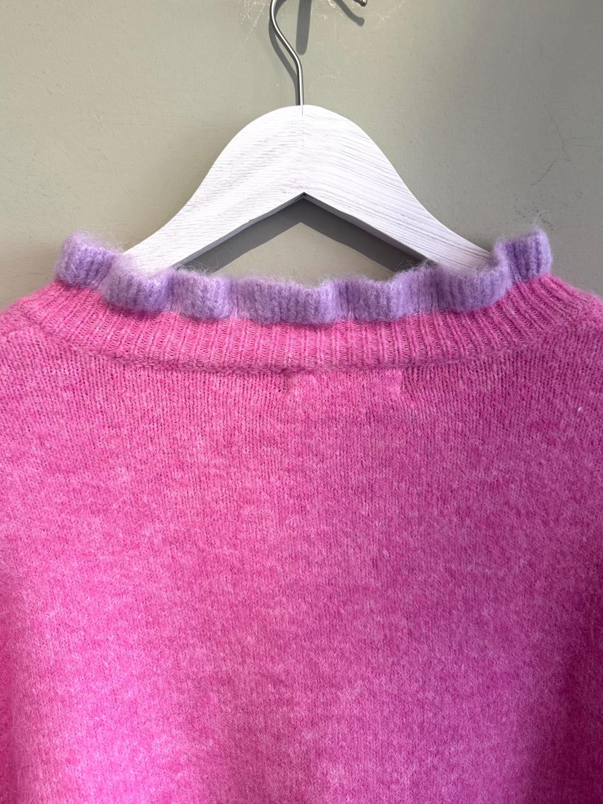 Amelia Piecrust Collar Ruffle Trim Wool Blend Cardigan - Rose Pink & Lilac