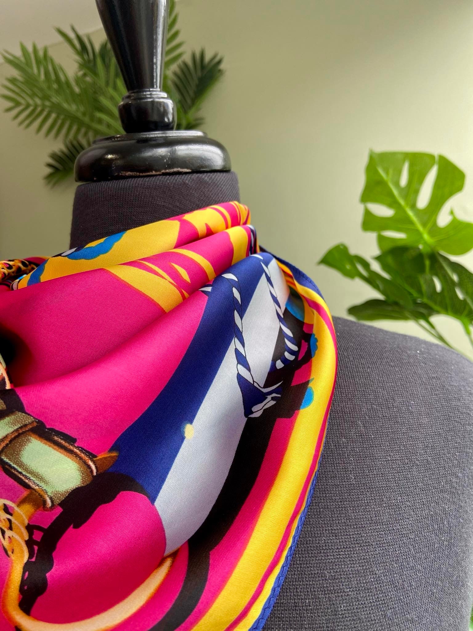 Charlotte Small Silk Mix Square Scarf - Pink Equestrian Design