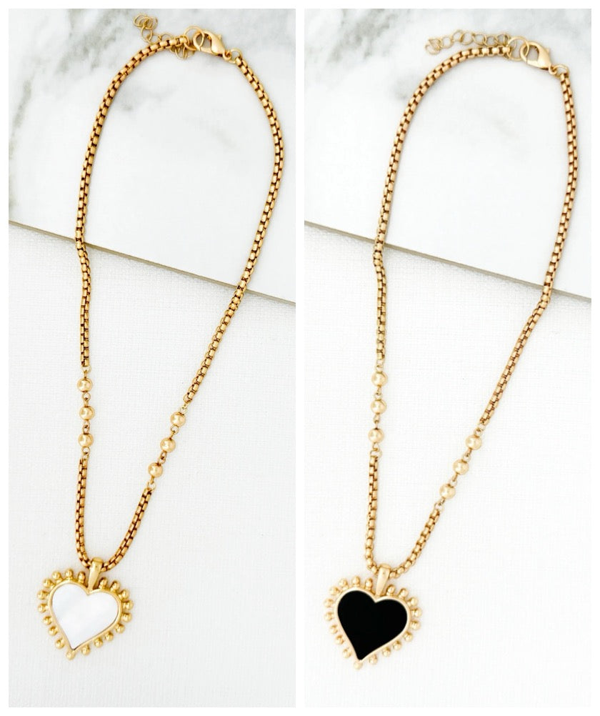 Envy Jewellery Gold Toned Short Necklace With Black Or White Heart Pendant