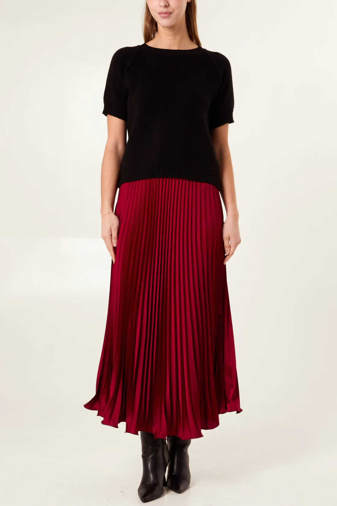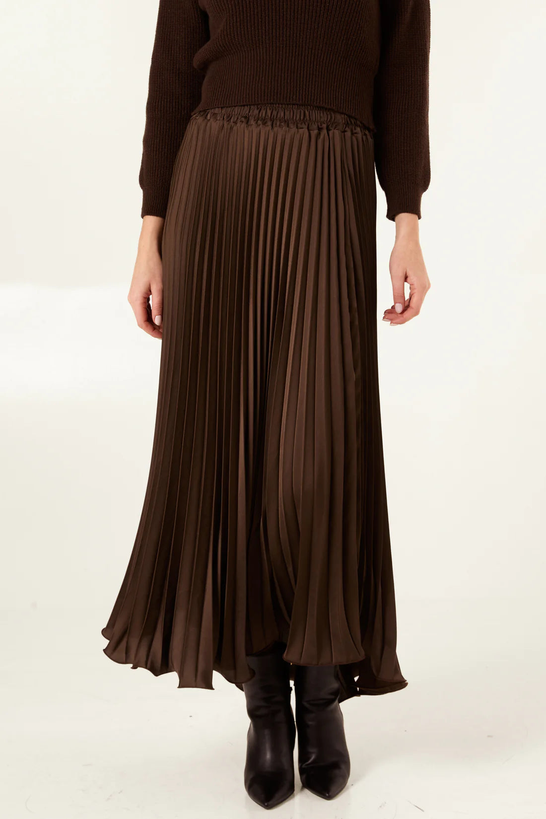 Liza Satin Pleated Maxi Skirt - Chocolate Brown, Wine Or Khaki