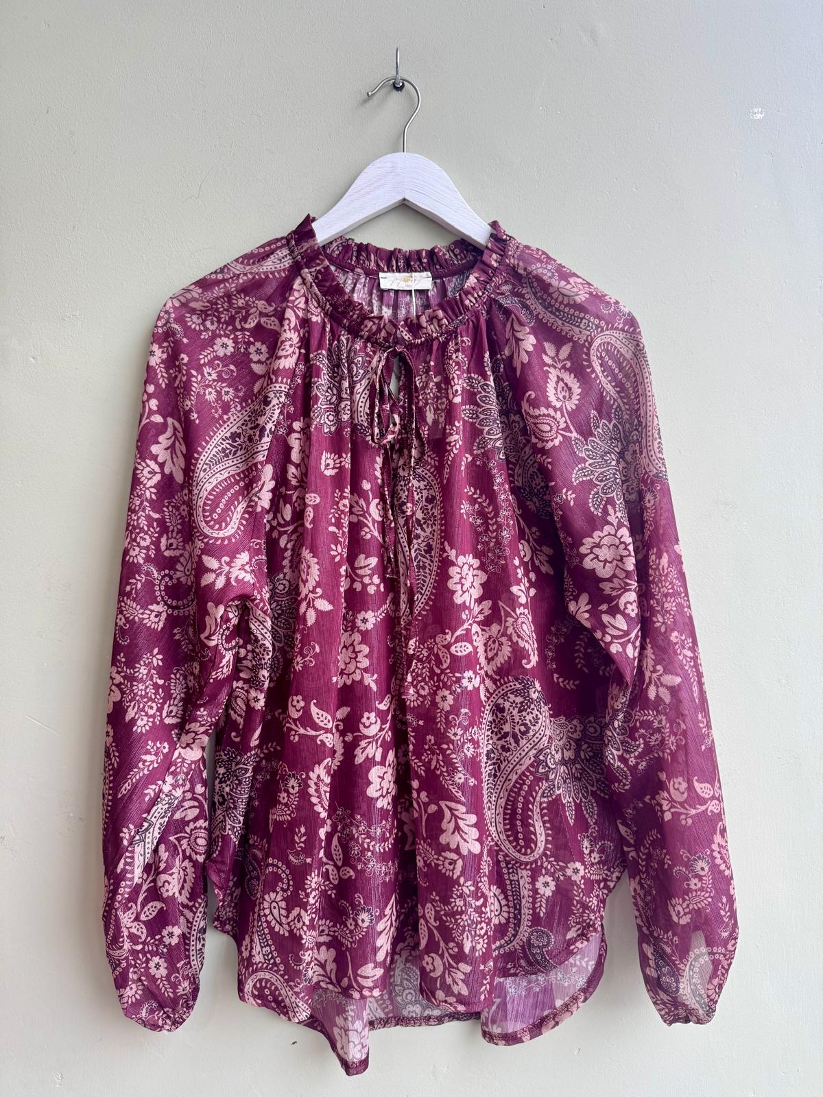 Sienna Paisley Boho Chiffon Blouse - Navy Or Burgundy