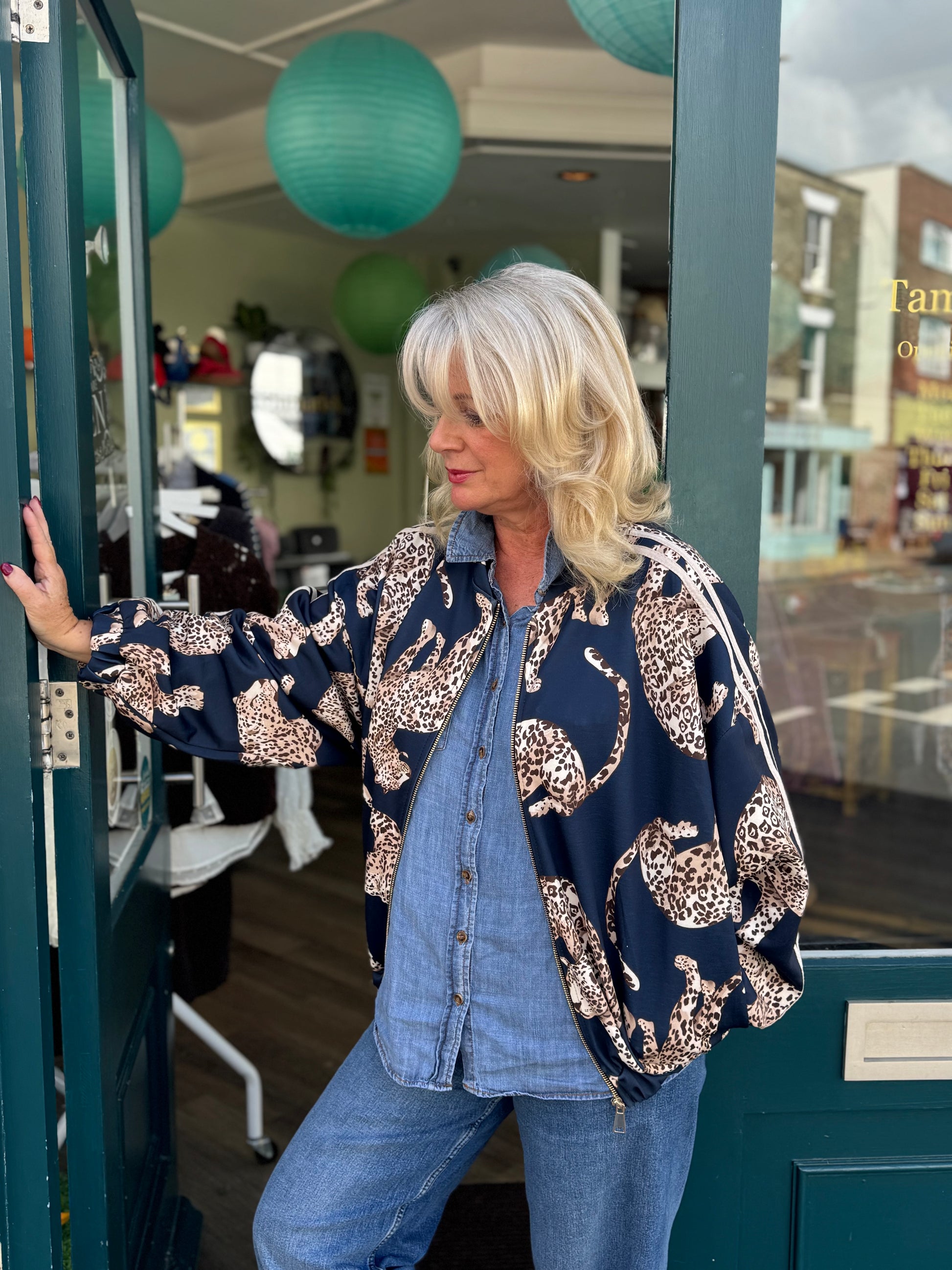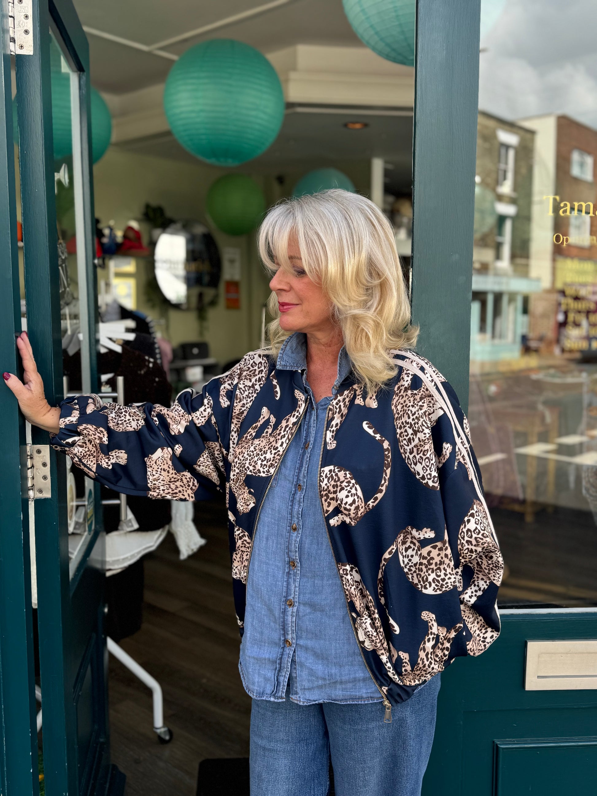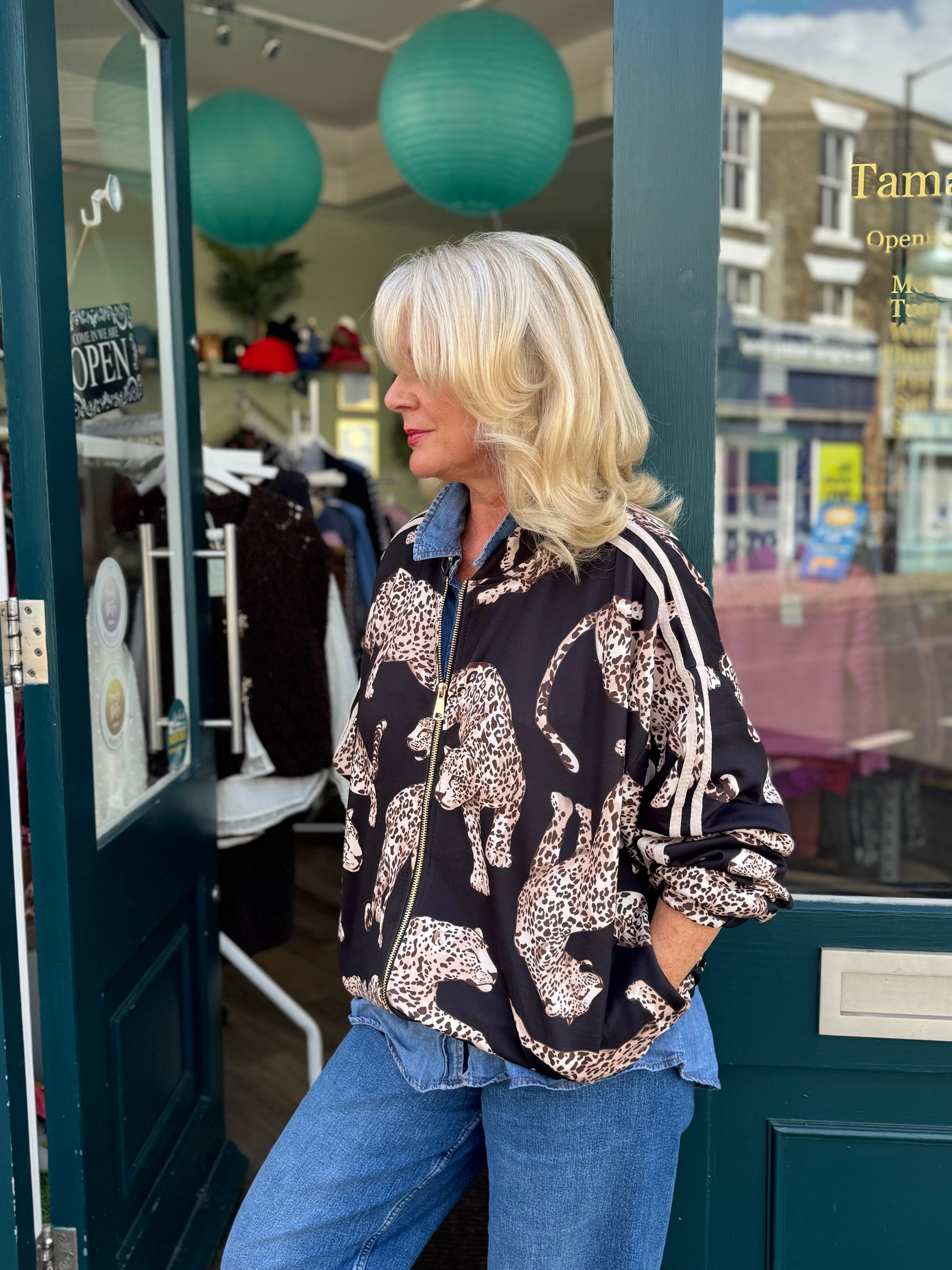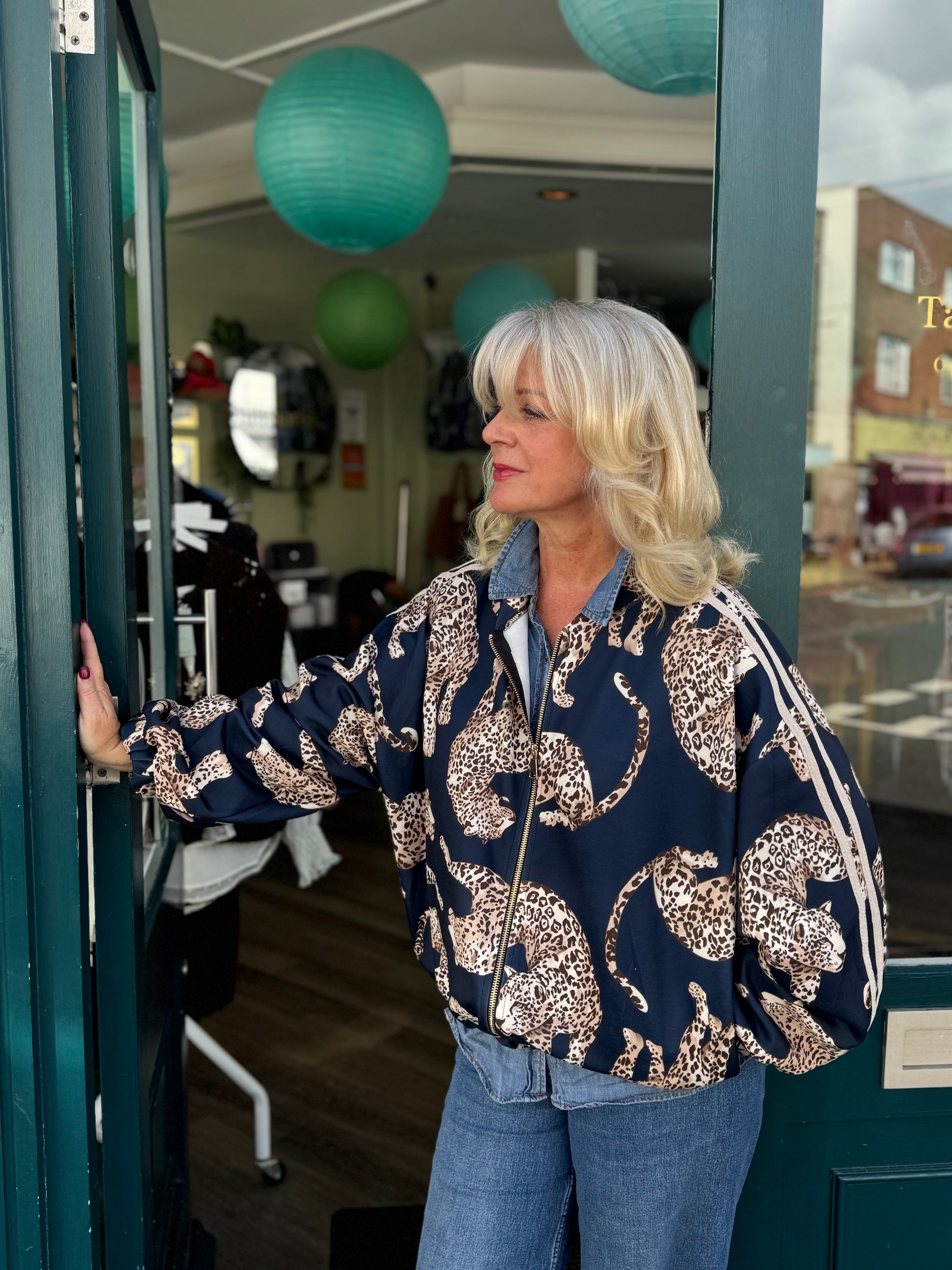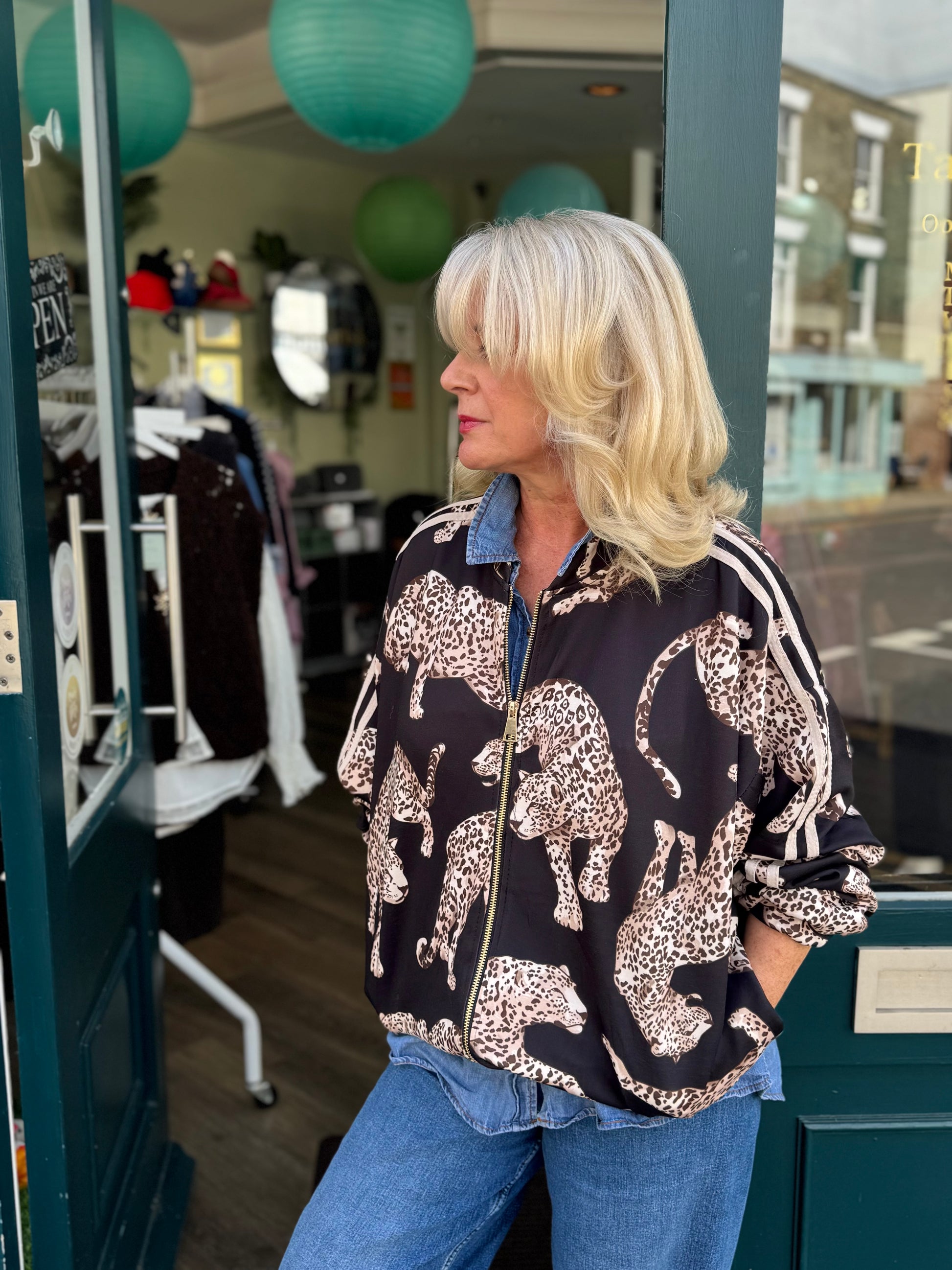 Sonia Leopard Bomber Jacket With Stripe Trim
